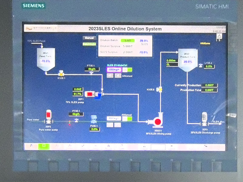 Its key advantage is eliminating the need to clean the SLES/SLS production units when switching between different product concentrations. You can simply produce the high-concentration product and store it in tanks for extended periods. Whenever a low-concentration product is needed, the system can dilute it on demand, at any time. This greatly enhances production and sales flexibility and convenience.
